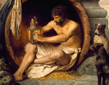 Ils ont choisi le nom de « Diogène » parce que le philosophe vivait de manière volontairement ascétique : il habitait dans un tonneau (en réalité une jarre), vivait avec très peu de choses et rejetait les conventions sociales.