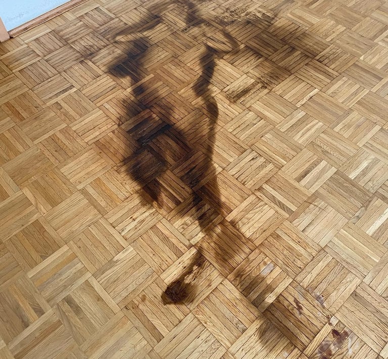 Découpe et évacuation de certaines parties de moquette ou de revêtement de sol.